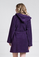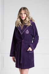 Уютный короткий халатик красивого фиолетового цвета выполнен из мягкой велюровой ткани с натуральными волокнами бамбука. Отложной воротник, переходящий в глубокий капюшон, и манжеты халата отделаны тонким атласным кантом, прекрасно подчеркивающим основной цвет ткани. Удобные, глубокие накладные карманы добавляют модели комфорта. Длинный, съемный пояс на шлевках подчеркивает силуэт. Классический крой и длина подойдут женщинам, ценящим удобство и комфорт. В этом прекрасном халате безмятежный домашний отдых гарантирован. Характеристики: Длина рукава от плечевого шва или плеча (см) 61 Длина по спинке (см) 85 Тип воротника Отложной Тип карманов Накладные Степень плотности ткани Высокая плотность Растяжимость ткани Не тянется Особенность ткани Мягкая и теплая Пояс В комплекте Капюшон Капюшон есть Вырез горловины V-образный К-во карманов 2 Состав: 60% бамбук, 25% хлопок, 15% полиэстер