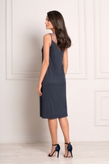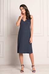 Женственная сорочка средней длины слегка расклешенного силуэта выполнена из легкой натуральной вискозы эффектного синего цвета меланж. Проймы окантованы атласной бейкой. Верхняя часть сорочки выполнена из изысканного кружева с роскошной вышивкой в бежевых тонах и ажурными краями. Декольте сорочки также украшает небольшой атласный бантик с красивой подвеской. Спинка модели с небольшим вырезом так же украшена кружевной вставкой по центру. В левом боковом шве небольшой разрез для комфортного движения. Свободный крой, мягко струящаяся ткань и эффектный цвет кроют недостатки фигуры. Характеристики: Длина по спинке (см): 108 Степень плотности ткани: Ткань тонкая Растяжимость ткани: Тянется слабо Состав: вискоза 95%, спандекс 5%.