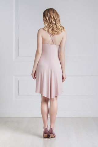 Стильная сорочка длиной выше колен пастельного цвета пудры выполнена из легкой, натуральной, эластичной вискозы высокого качества, приятной телу. Лиф с V-образным вырезом и проймы окантованы атласной тканью в тон. Сорочку украшают по бокам вставки из шикарного кружева NORON DENTELLE (Франция) с цветочным узором, которое привлекает взгляд и делает образ особенно романтичным. Спинка с глубоким вырезом и удлиненным, ассиметричным подолом. Сорочка на тонких, регулируемых атласных бретелях. Нежный цвет и кружево создают прекрасный тандем для вашего женственного образа. Характеристики: