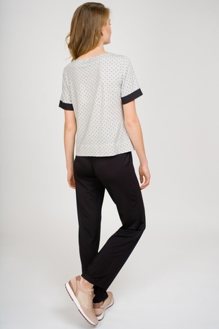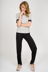 Яркий домашний комплект розового цвета состоит из двух предметов: короткой сорочки облегающего силуэта и свободной туники-накидки. Сорочка выполнена из тонкой атласной ткани и украшена по низу кружевом с ажурными краями. Тонкие бретели регулируются по длине. Туника свободного силуэта из легкой трикотажной ткани отделана вдоль выреза горловины, рукавов и нижнего края атласной тканью. В боковых швах высокие разрезы, делающие модель воздушной и особенно комфортной в носке. Отличное решение для прохладных вечеров. Характеристики: Длина рукава от плечевого шва или плеча (см) 64 Длина по спинке (см) 76 Бретели Несъемные, регулируемые Степень плотности ткани Ткань тонкая Растяжимость ткани Хорошо тянется Комплектация Туника+сорочка Вырез горловины Округлый Тип рукавов В три четверти Состав: Кофта: 95% вискоза, 5% спандекс; брюки: 94% м/модал, 6% эластан