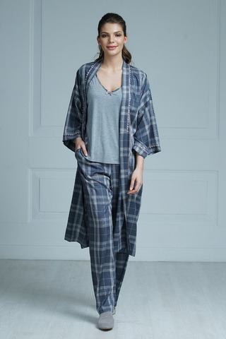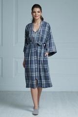 Прекрасная модель с классическим узором в клетку - халат универсальной длины чуть ниже колена, на запахе. Модель выполнена из легкой, мягко струящейся вискозы в серо-бежевую клетку. Комфортная длина модели и свободный силуэт созданы для отдыха и красоты. Простой, но при этом элегантный дизайн халата подчеркнут легкими акцентами из кружевной тесьмы, которой украшены свободные рукава длиной ¾ и полочки. В боковых швах карманы. Длинный съемный пояс на шлевках отлично подчеркнет ваш силуэт. Красивая расцветка и декор создают прекрасное настроение. Состав: 100 % вискоза.