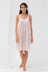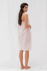 Легкая ночная сорочка средней длины свободного силуэта выполнена из 100% натуральной смесовой ткани светло-розового цвета с изысканным шелком. Сорочка то тонких, регулируемых по длине бретелях. Фигурный вырез декольте спереди и бретели декорированы тканью с красивой вышивкой и ажурной розовой тесьмой с цветочным узором. Декольте также украшено легкой драпировкой и встречной складкой, которая красиво моделирует силуэт и дарит еще больше комфорта и свободы. Нижний край сорочки отделан тонким ажурным кантом. Красивая и комфортная сорочка, изящная в своей простоте, красоте и высоком качестве. Характеристики: Степень плотности ткани: Ткань легкая Растяжимость ткани: Не тянется Состав: хлопок 70%, шёлк 30%