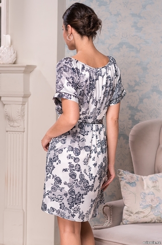 Короткая туника Mia-Mella с цельнокроеными спущенными кроткими рукавами выполнена из принтованного искусственного шелка. Вырез горловины и низ рукавов декорированы контрастным кантом. В боковых швах расположены карманы. Туника регулируется по талии поясом с кисточками. Состав 100% полиэстер