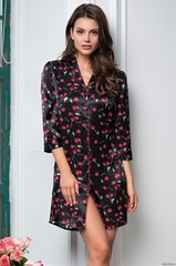 Короткая рубашка Mia-Amore с английским воротником, с застежкой на пуговицы, с рукавами 3/4 выполнена из принтованного искусственного атласного шелка. Рукава, воротник и борт рубашки декорированы вишневым кантом. Состав: полиэстер 100%