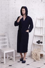 Бамбуковый халат высокого класса для настоящих мужчин, любящих комфорт и свободу! Внешняя сторона под велюр, а внутренняя - петельчатая махра, создающая легкий, массажирующий эффект. Двухсторонний полноценный капюшон, широкий манжет, легко подворачивающийся по длине руки, дополнительно удлиненный вариант(Рост модели на фото 188 см.).