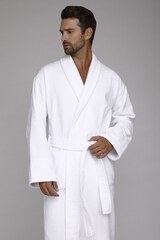 Классический махровый халат из 100% натурального турецкого хлопка. Плотный ворс, двойная крученая петля. Яркий чистый белый цвет. За счет использования немецких красителей цвет халата не теряет своей яркости долгие годы. Линия плеча чуть приспущена для удобства в движении. Двухсторонняя махра создает ощущение мягкости, комфорта и легкого массажирующего эффекта. Свободные широкие рукава с манжетами с возможностью подворота по длине руки. Подборта до низа халата для предотвращения деформации после многократных стирок. Отлично впитывает влагу, легко стирается. 100% натуральный турецкий хлопок с устойчивым выкрасом великолепно подойдет для профессионального использования в SPA, банях, салонах и отелях. Состав: 100% турецкий хлопок (Open end)
