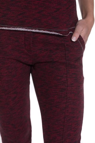 Комфортные брюки в спортивном стиле от Торговой марки PECHE MONNAIE France - идеальный вариант в качестве удобной стильной одежды на каждый день! Актуальный и современный "Look". Брюки из плотного и легкого трикотажного материала - футер. Основной состав ткани -натуральный хлопок, обеспечивающий великолепные "дышащие" свойства и естественный теплообмен. А небольшое добавление полиэстера не позволяет материалу вытягиваться и деформироваться в наиболее "активных" зонах движения. Красивый глубокий цвет - "бордовый меланж", комбинация бордовых и черных нитей.