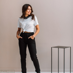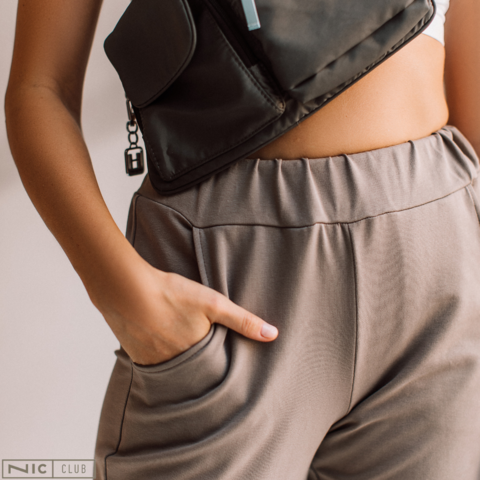 Базовые брюки в спортивном стиле с карманами и широкими манжетами. Важно отметить, что манжет достаточно широкий (не обтягивает щиколотку), за счёт чего и создаётся модный силуэт. Такие штаны называются «Джоггеры», так как изначально такая модель предназначалась для «джоггинга» (т.е. бега трусцой). Модель брюк в угоду современному стилю чуть свободнее, на талии. Представлена в 3х цветах: насыщенном чёрном, трендовом песочно-бежевом и лавандовом цвете в нейтральном оттенке «сорбетт» К данной модели можно приобрести отдельно кофту-худи.