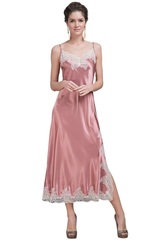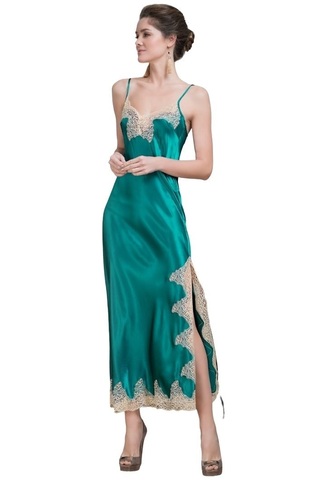 Длинная сорочка Mia-Amore на тонких бретелях без подреза из смесового шелкового полотна. Лиф и низ сорочки декорированы изысканным тонким кружевом, вырезанная по форме кружева кромка ткани придает удивительную воздушную легкость модели. Дизайн коллекции - студия Angelo Bellini (Milano).