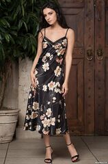 Элегантная длинная сорочка Mia-Amore из смесового шелкового полотна с цветочным принтом. Сорочка приталенного силуэта, слегка расклешенная к низу. Тонкие бретели сорочки и отделка лифа выполнены из черного смесового шелка с кантом золотистого оттенка в цвет принта. Спинка со слегка углубленным V-образным вырезом для завершения утонченного образа.