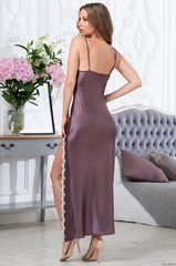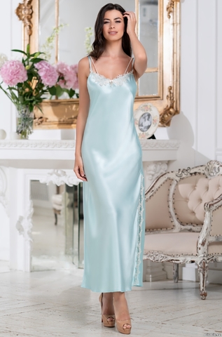 Сорочка Mia-Amore - это идеальный выбор для тех, кто ценит комфорт и изысканность. Изготовлена из однотонного натурального шелка с небольшим добавлением полиэстера и эластана. Разрез и лиф сорочки украшены резным кружевом цвета экрю, а на лифе есть милый бантик.