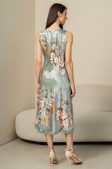 Длинная сорочка Mia-Amore без подреза с широкой бретелью выполнена из принтованной смесовой ткани. Вырез горловины, низ сорочки, разрез сбоку декорированы кружевом.