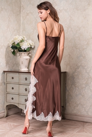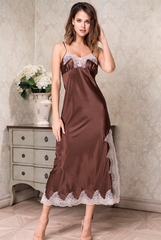 Длинная сорочка Mia-Amore на тонких бретелях с подрезом под грудью из смесового шелкового полотна. Лиф и низ сорочки декорированы изысканным тонким кружевом, вырезанная по форме кружева кромка ткани придает удивительную воздушную легкость модели. Дизайн коллекции - студия Angelo Bellini (Milano).