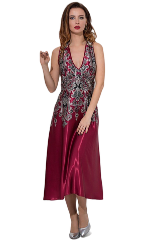 Длинная сорочка Mia-Amore на широких бретелях с подрезом под грудью. Выполнена из смесового шелка с купонным принтом расположенным по верхней части сорочки. Состав: 70% натуральный шелк, 25% полиэстер, 5% эластан