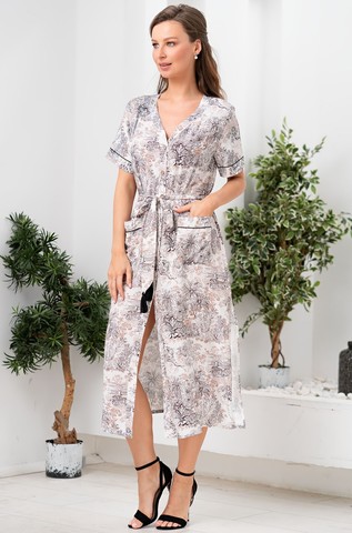 Длинное платье-халат с центральной застежкой на пуговицы с короткими рукавами Mia-Amore выполнен из вискозного принтованного полотна. Рукава и карманы халатика отделаны кантиком, пояс украшен кисточками Состав: 100% вискоза