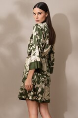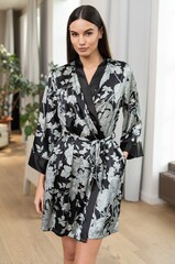 Халат Mia-Amore - идеальный выбор для комфортного отдыха дома. Широкий рукав 3/4 и изысканный дизайн создадут уютную атмосферу. Изготовленный из натурального шелка с добавлением полиэстера и эластана, он очень приятен к телу. Карманы по бокам делают его еще более функциональным.