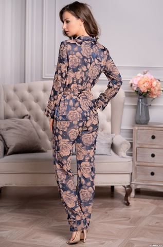 Элегантный комплект Mia-Amore состоит из жакета с центральной застежкой на пуговицы и брюк, выполнен из двухцветного жаккардового полотна. Манжеты рукавов, борт, карман жакета и низ брюк декорированы однотонным кантом. В боковых швах брюк выполнены карманы. По талии ширина жакета регулируется широким поясом. Состав: 65% полиэстер, 35% вискоза