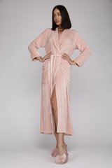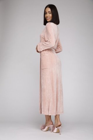 Этот шикарный удлиненный халат от бренда PECHE MONNAIE France создан из нежнейшего велюра. Использование вискозы в составе ткани дарит незабываемые тактильные ощущения, создает ощущение прохлады и идеальный комфорт. Красивый нежный цвет со "струящимся" переливом пудровых оттенков.Халат подходит под любой тип фигуры благодаря идеальным лекалам. Удобные накладные карманы, свободный рукав с комфортной длиной 3/4, пояс, внутренние завязки для удобной фиксации на талии. В этом шикарном халате приятно не только окунуться в мир спокойствия и домашнего уюта, но еще он идеально подойдет для встречи гостей. Вы всегда будете выглядеть элегантно и привлекательно!
