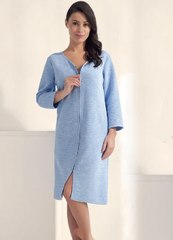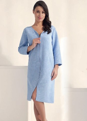 Халат большемерит на половину размера! Халат женский из приятного хлопка с тисненым рисунком. Застегивается на молнии, длинный рукав. По бокам удобные карманы. Состав: 78% хлопок, 22% полиэстер Примечание. На данный товар, услуга примерки второго размера не предоставляется.