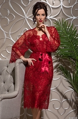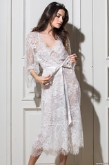 Длинный халат Mia-Amore выполнен из ажурного кружева Шантильи (Сhantilly) c изысканным рисунком по низу и рукавам.