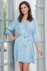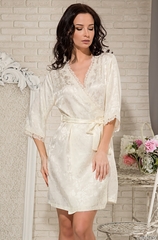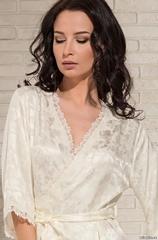 Классический халат Mia-Amore кимоно из натурального шелка с жаккардовой основой, декорирован ажурным кружевом в цвет шелка. Состав 100% натуральный шелк