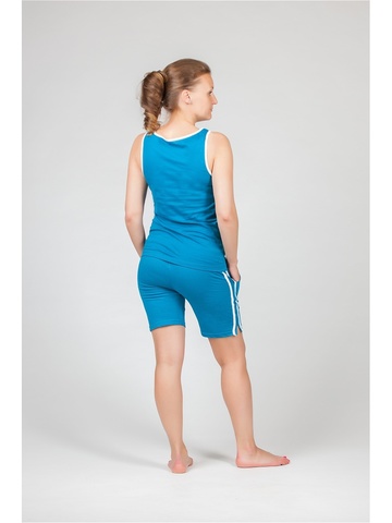 Женский комплект от итальянской фирмы Renato Balestra («Ренато Балестра»): майка и шорты из хлопкового трикотажа. Два базовых цвета — голубой и темно-синий — оттеняются контрастными яркими цветами. Майка — на широких лямках с контрастной отделкой, вырез низкий круглый (U-образный). Майка украшена яркими горизонтальными полосами с бантиком и фирменной вышивкой. Шорты — с карманами, до середины бедра. Сбоку — яркие лампасы. Комплект подходит для дома и отдыха. Состав: 100%ХЛ Материал: Трикотаж Страна производитель: Италия Комплектация: Майка и шорты