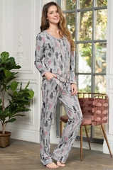 Комплект Mia-Mella состоит из лонгслива и брюк. Комплект выполнен из принтованного мягкого серого меланжа. Спереди на лонгсливе декоративный кармашек. Состав 35% акрил, 35% полиэстер, 25% вискоза, 5% спандекс