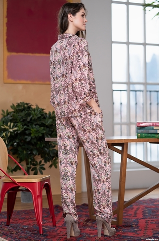 Жакет на пуговицах с брюками Mia-Amore выполнены из принтованного вискозного полотна. Край борта жакета, рукава, карманы и низ брюк декорированы контрастным тонким кантиком. Состав: 100% вискоза