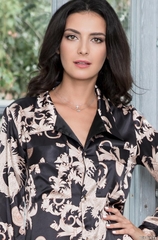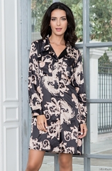 Короткая платье-рубашка Mia-Mella на пуговицах с длинным рукавом выполнен из принтованного искусственного шелка. Длина рукавов регулируется с помощью паты на пуговицах. Перед рубашки декорирован кармашками. Состав: полиэстер 100%
