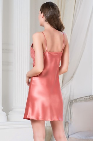 Короткая сорочка Mia-Amore на тонких бретелях выполнена из смесового однотонного шелка. Лиф декорирован нежным кружевом. Отрезная конструкция чашек подчеркнет силуэт. По центру лифа изящный бантик с подвеской.