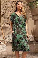 Туника Mia-Amore свободного силуэта длиной чуть выше колен с коротким рукавом. Изделие выполнено из принтованного смесового шелка. В боковых швах обработаны карманы. В комплекте пояс.