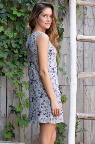 Короткая сорочка Mia-Mella с V-ным вырезом на широких бретелях и центральной застежкой на кнопках. Выполнена из принтованного трикотажного полотна с меланжевой основой. Состав 35% акрил, 35% полиэстер, 25% вискоза, 5% спандекс