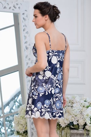 Короткая сорочка с отрезным лифом на тонких бретелях Mia-Amore выполнена из принтованного атласного шелка. Верхний срез чашек и низ сорочки украшены ажурным белым кружевом. По центру лифа - декоративный бантик с подвеской. Состав: полиэстер 100%