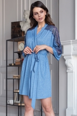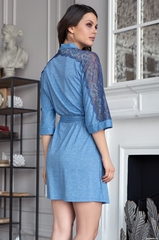Короткий халат Mia-Amore выполнен из трикотажного меланжевого полотна. Рукава-реглан ¾ по всей длине элегантно украшены двухцветным эластичным кружевом. В боковых швах карманы. В комплекте идет пояс. Состав 100% вискоза