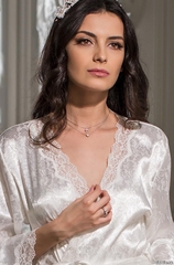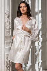 Короткий халат-кимоно Mia-Amore выполнен из жаккардового шелка. По бокам расположены карманы. По низу рукавов - оборка. Ажурное кружево украшает борта и низ рукавов. Состав: 100% полиэстер