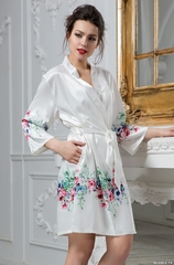 Короткий классический халат Mia-Amore выполнен из атласного шелка с купонным принтом расположенным по низу халата и низу рукавов. По бокам расположены карманы. Состав 100% полиэстер