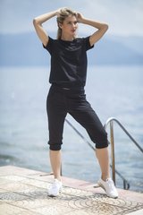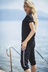 Бриджи оптимальной длины ниже колена с манжетам, украшены лампасом по внешней части. Мягкий и широкий пояс на резинке. Удобные внутренние карманы.