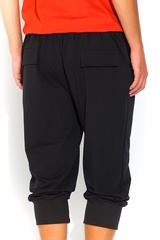 Свободные шорты - бриджи чуть ниже колена с эффектными складками и широкой резинкой внизу - для плотной фиксации по ноге. Широкая и комфортная резинка по талии с внутренними завязками для лучшей фиксации. Удобные боковые карманы стильно декорированы внешними накладками с фирменными пуговицами в центральной части. Сзади выполнены эффектные накладки в виде муляжа задних карманов. Шорты изготовлены из плотной и теплой хлопковой ткани - футер, это плотная и в тоже время мягкая ткань, гладкая с внешней стороны и нежная с внутренней, что делает ее удивительно комфортной.