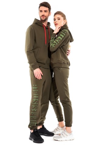 Стильный костюм из плотной трикотажной ткани в модной расцветке "хаки". Костюм состоит из кофты-худи(hoodie) и брюк.