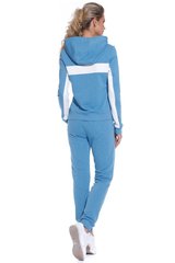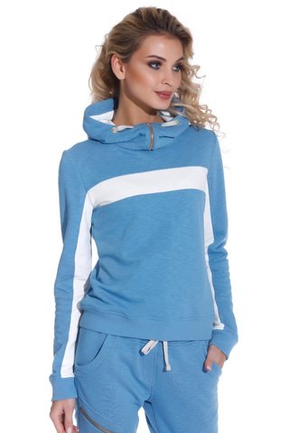 Стильный костюм из плотной трикотажной ткани в расцветке "голубой меланж". Костюм состоит из кофты-худлона(hoodie) и брюк. Худлон с полноценным капюшоном и декоративной вставкой. Брюки с чуть приспущеной проймой, слегка заужаются к низу и заканчиваются манжетам, сбоку и сзади небольшой карман. Оригинальный вставка белого меланжевого цвета по передней части худлона и на внутренней стороне рукава. Стиль, комфорт и свобода в каждом движении! Незаменимый вариант для занятий фитнесом, активным отдыхом или в поездках. Актуальный и современный "Look". Материал костюма - плотный трикотаж с внутренней петельчатой структурой(футер). Основной состав такой ткани - натуральный хлопок, обеспечивающий великолепные "дышащие" свойства и естественный теплообмен. А небольшое добавление полиэстера не позволяет материалу вытягиваться и деформироваться в наиболее "активных" зонах движения.Рост модели на фото 172 см., размер S(Российский 44). Состав: 80% хлопок, 20% пэ