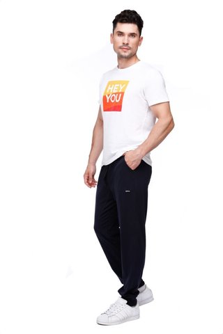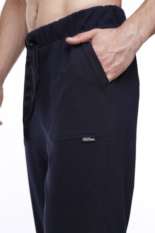 Широкий и удобный пояс на резинке, мягкий манжет в нижней части, боковые карманы с внешней декоративной строчкой.