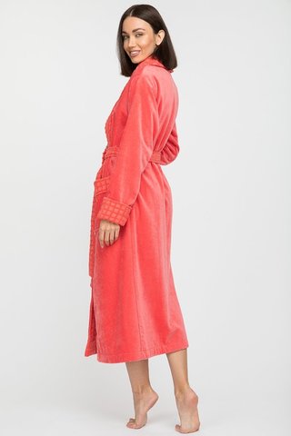 Современно и нестандартно - первое, что приходит на ум, увидев этот банный халат. Ультра мягкая махровая ткань, очень приятный к телу материал. Внутренняя сторона - пушистая и плотная махра, создающая легкий массажирующий эффект. Внешняя сторона - стриженная под велюр. Отделка шальки, карманов, пояса и манжетов из оригинальной жаккардовой ткани в клетку. Плотность махровой ткани 420 гр/м2. Комфортная длина халата ниже середины икры (рост модели на фото 176 см). Этот халат подарит своей хозяйке неповторимый комфорт и нежность!