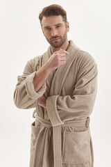Классический махровый халат из 100% натурального турецкого хлопка. Плотный ворс, двойная крученая петля. Чистый, благородный цвет. За счет использования немецких красителей цвет халат не теряет своей яркости долгие годы. Линия плеча чуть приспущена для удобства в движении. Двухсторонняя махра создает ощущение мягкости, комфорта и легкого массажирующего эффекта. Свободные широкие рукава с манжетами с возможностью подворота по длине руки. Подборта до низа халата для предотвращения деформации после многократных стирок. Отлично впитывает влагу, легко стирается. 100% натуральный турецкий хлопок с устойчивым выкрасом великолепно подойдет для профессионального использования в SPA, банях, салонах и отелях.