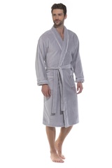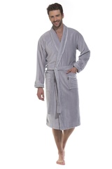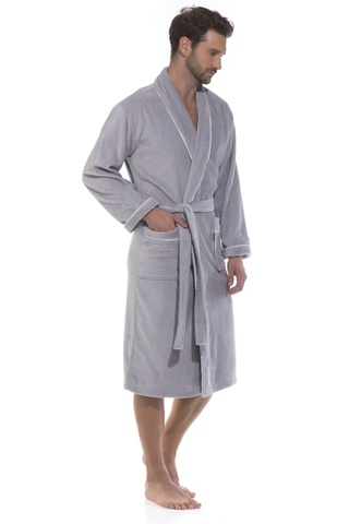 Махровый халат в классическом стиле с внешней велюровой стороной. Велюровая сторона имеет приятный и приглушенный матовый отблеск, а так же противостоит образованию зацепок. Внутренняя сторона - петельчатая махра, создает легкий массажирующий эффект. Воротник - шалька, широкий манжет. По всей длине полов халата, на карманах и воротнике - отделка красивым декоративным кантом. Универсальная длина(рост модели на фото - 188 см.).