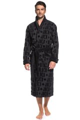 Оригинальный жаккардовый рисунок украшает внешнюю сторону халата. Внутренняя сторона - петельчатая махра, создающая легкий массажирующий эффект. Ткань плотная и очень приятная к телу. отделка по воротнику, манжетам рукава и карманам выполнена из однотонной ткани в цвет изделия.