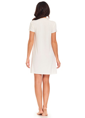 Мягкая и приятная на ощупь женская сорочка, идеально подходит для дома. Классическая модель, выполнена в спокойной цветовой гамме, с коротким рукавом и кружевным вырезом на груди. Состав: 94% вискоза, 6% эластан Примечание. На данный товар, услуга примерки второго размера не предоставляется.