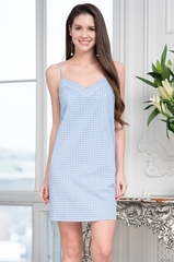 Короткая сорочка Mia-Amore на тонких бретелях без подреза под грудью, выполнена из сочетания 2-х видов клетки. Белый кант подчеркивает вырез сорочки. Состав: 100% хлопок