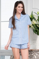 Комплект Mia-Amore состоит из рубашки с коротким рукавом и шорт. Комплект выполнен из сочетания 2-х видов клетки с отделкой в виде белого канта. По бокам шорт расположены карманы. Состав: 100% хлопок
