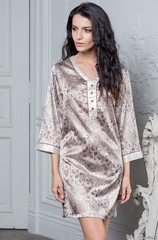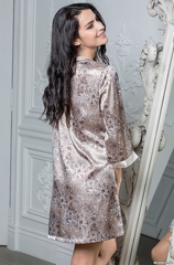 Платье-туника Mia-Mella с рукавом ¾ и боковыми разрезами. Манжеты и V-образный вырез выполнены из светлого атласа и декорированы тесьмой, вырез также украшен декоративными пуговицами. Состав: полиэстер 100%