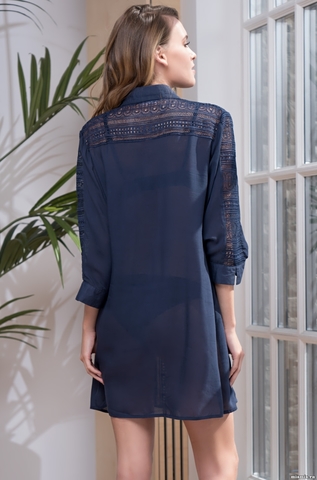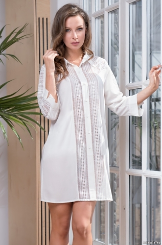 Рубашка Mia-Amore из хлопка свободного покроя с рукавом длиной ¾. Кружевные вставки располагаются вдоль застежки, по верху спинки, а также по рукавам. По низу боковых швов обработаны разрезы. Состав 65% хлопок, 35% вискоза